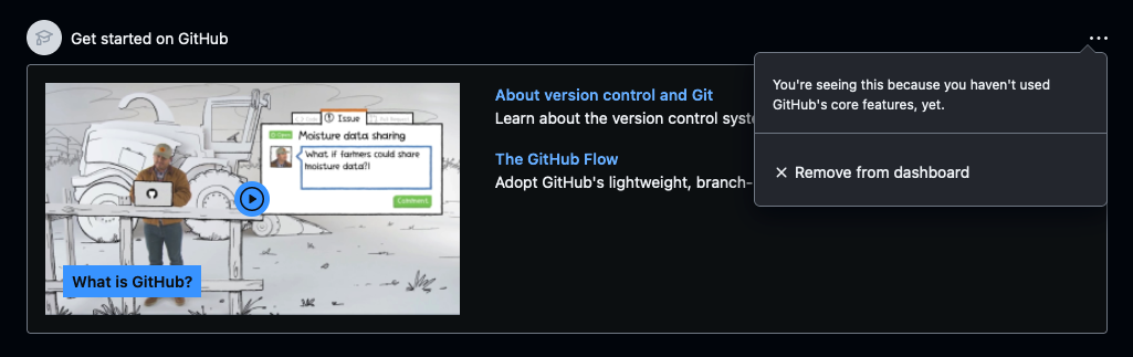 I'm in complete agreement. I've been using Github since 2013 (almost 10 years) with public open-source repository contributions, and these sections showed up for me because I "haven't created a new repo" or "new pull request" in "a while". I think it makes total sense for new users, but I am not a new user. |