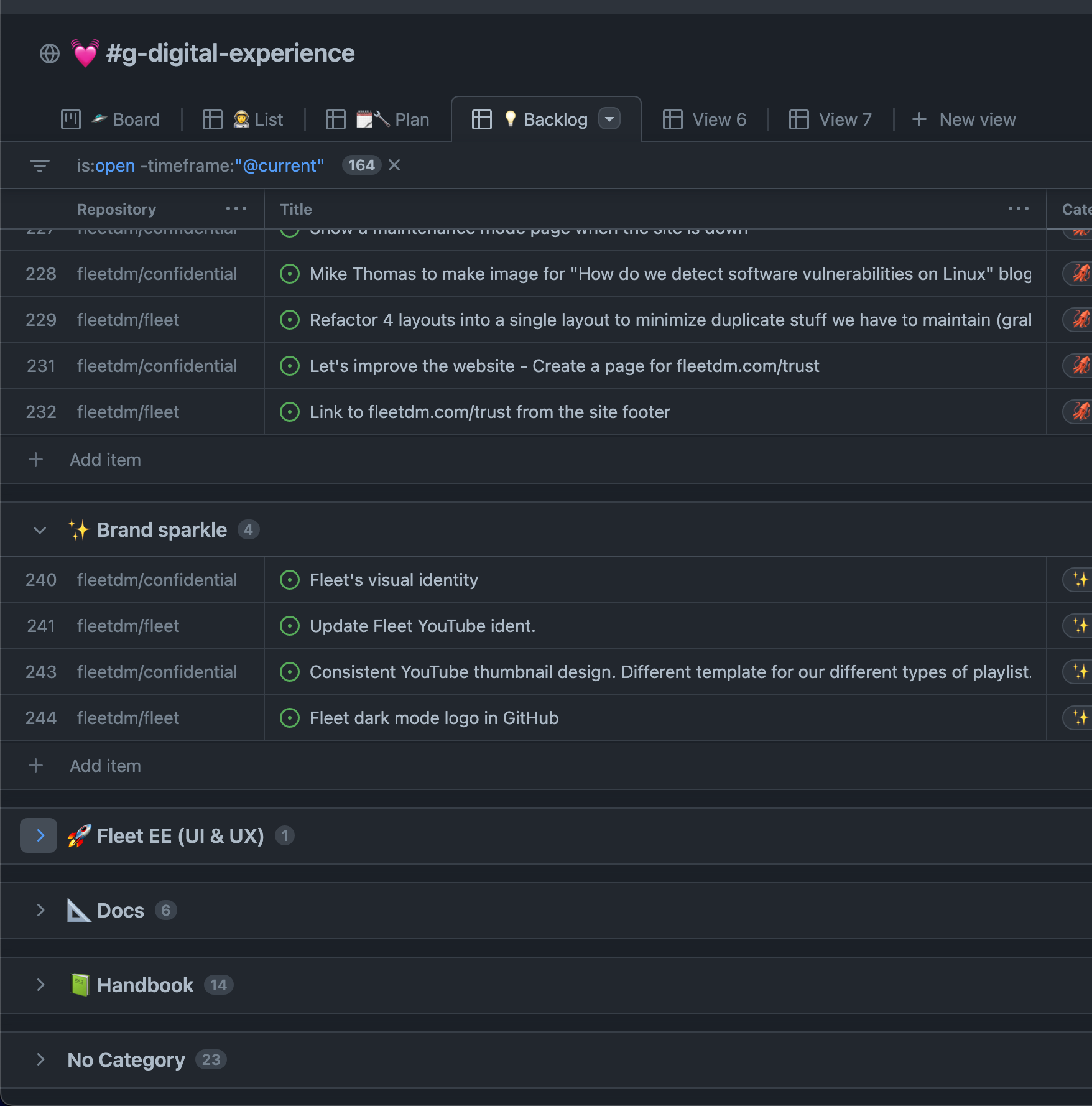 Would love to have this for consistency with the behavior in pull request reviews, and also because it's a pain to scroll through and manually collapse categories in a big juicy backlog.