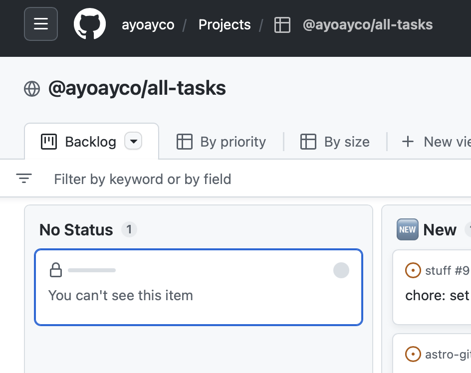 I've seen this today with a project to which I've been added. I'm in a different organisation to the project owner. The workaround is to put the following into the filter: "is:open,closed". Also see #8550. As @dustingoodman has suggested, maybe tickets can have an internal state (such as deleted or orphaned) which isn't exposed through the filter as a TYPE or STATE, and the filter logic isn't filtering them out correctly? https://docs.github.com/en/issues/planning-and-tracking-with-projects/customizing-views-in-your-project/filtering-projects#filtering-for-item-state-or-item-type |