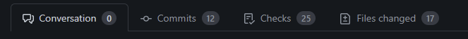 When a PR is opened, there are some tabs available to navigate between relevant items: