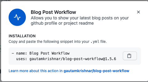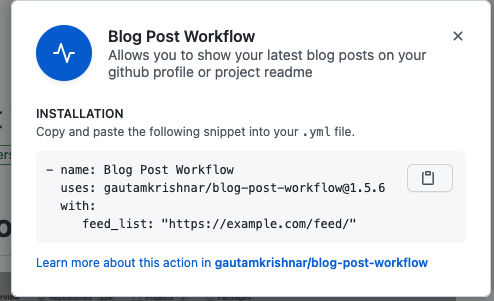 Currently "use latest version" button shows the following modal for my GitHub action https://github.com/marketplace/actions/blog-post-workflow:
