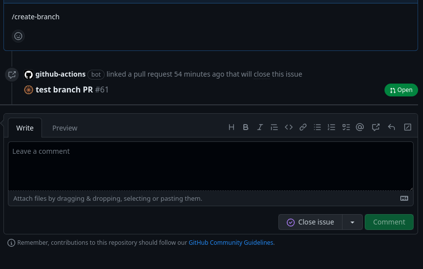 which should create a new branch and PR & After creating a new PR we need to link it with the same issue from which we triggered this automation (from issue comments).