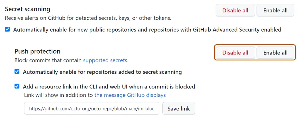 Select Topic AreaQuestion BodyIf I understand correctly, according to the billing plans, secret scanning push protection should be available for public repositories for free: However, there's no option to enable push protection either at the organization or (public) repo level: I'm looking for a setting like this (copied from https://docs.github.com/en/enterprise-cloud@latest/code-security/secret-scanning/protecting-pushes-with-secret-scanning#enabling-secret-scanning-as-a-push-protection): Is secret scanning push protection restricted to Enterprise plans with GitHub Advanced Security enabled? This would be a real shame, as public repositories would benefit the most from proactively avoiding the leakage of secrets. I've also tried using the API to enable the setting. The calls return successfully, but the actual setting remains disabled. |