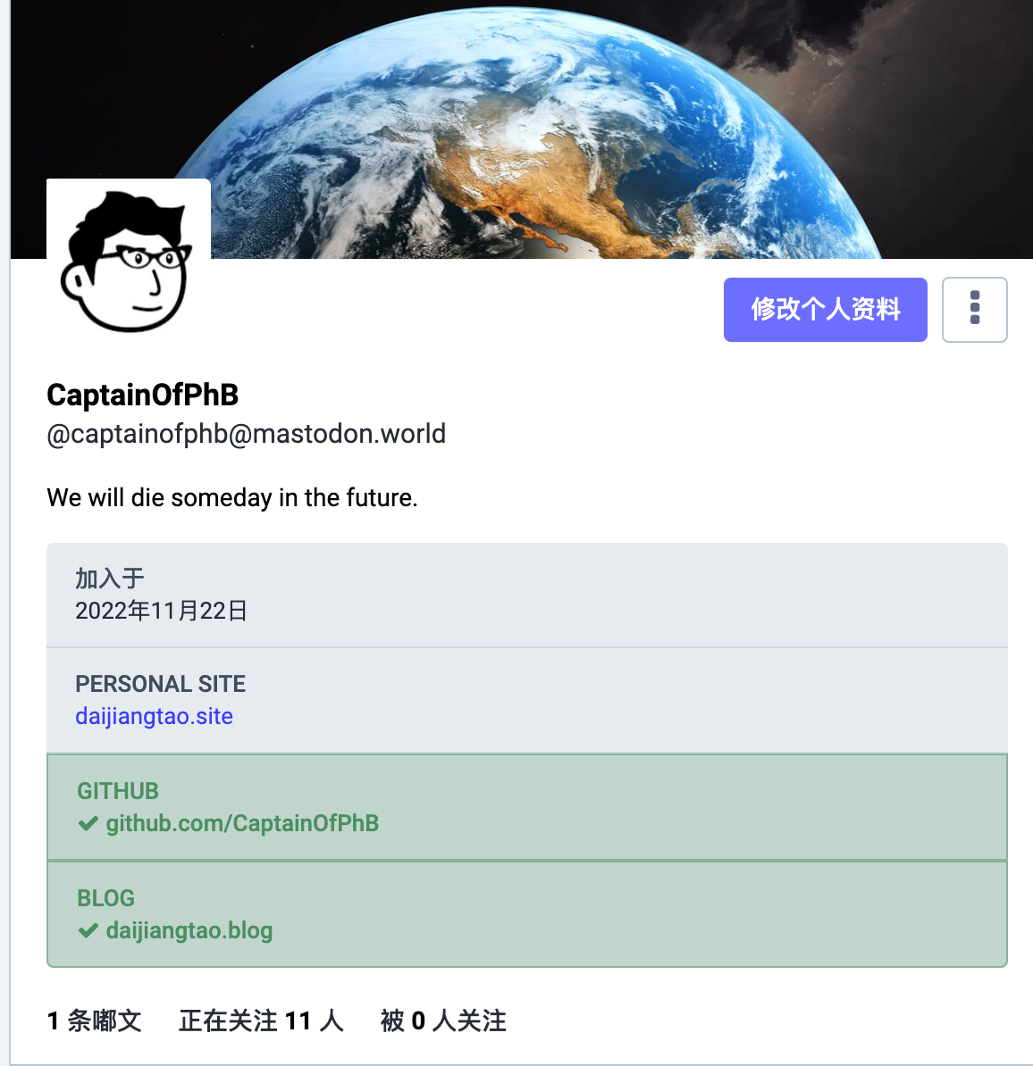 Let me tell you guys how to do it 😂 DON'T edit your GitHub profile Fill the link section of your GitHub profile page with your mastodon link, then it will take effect, my English is poor so see the below screenshot. After a while my mastodon profile page verified it's my website. You can then undo your edits or leave the link section blank. Verified status will be preserved. Wish it can help you. |