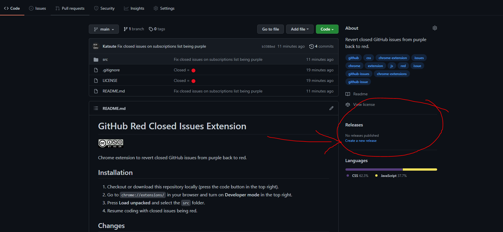 The releases tab is on the right sidebar. You can press the gear ⚙ next to the About to turn it on. |