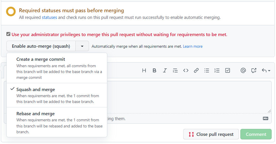 I have a PR I want to admin-merge to bypass some known CI issues. However, I'm only offered the auto-merge option, there's no way to directly merge. |